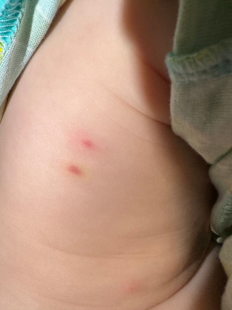 Катя, моих залетевший комар мог несколько дней подряд кусать. Вот это пятно и ободок розоватый вокруг очень на него похоже.
