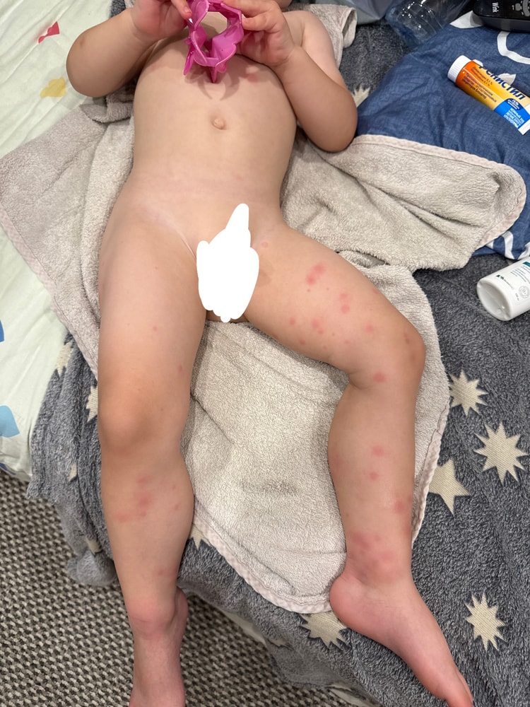 Сходите все же к дерматологу. Педиатр не про это. Похоже на укусы, но ни разу не аллергия
