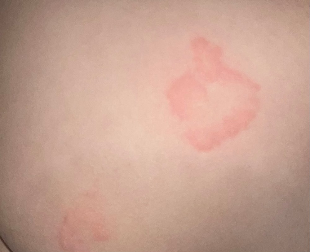 Высыпания на кожеВсем привет, дочери 2 года, в нашей группе в саду начинают детки активно болеть ветрянкой. У нас температура и заложенность носа второй день. Сегодня на ногах появились пятна как от укуса комаров, но появились после сна. Помазала каламином и все прошло через пару часов. Сейчас смотрю, похожие пятна вылезли на ягодицах, но уже в виде круга. Сам круг красноватый, а внутри обычный, бежевый. Не понимаю, что это может быть. Никаких новых продуктов не употребляли
