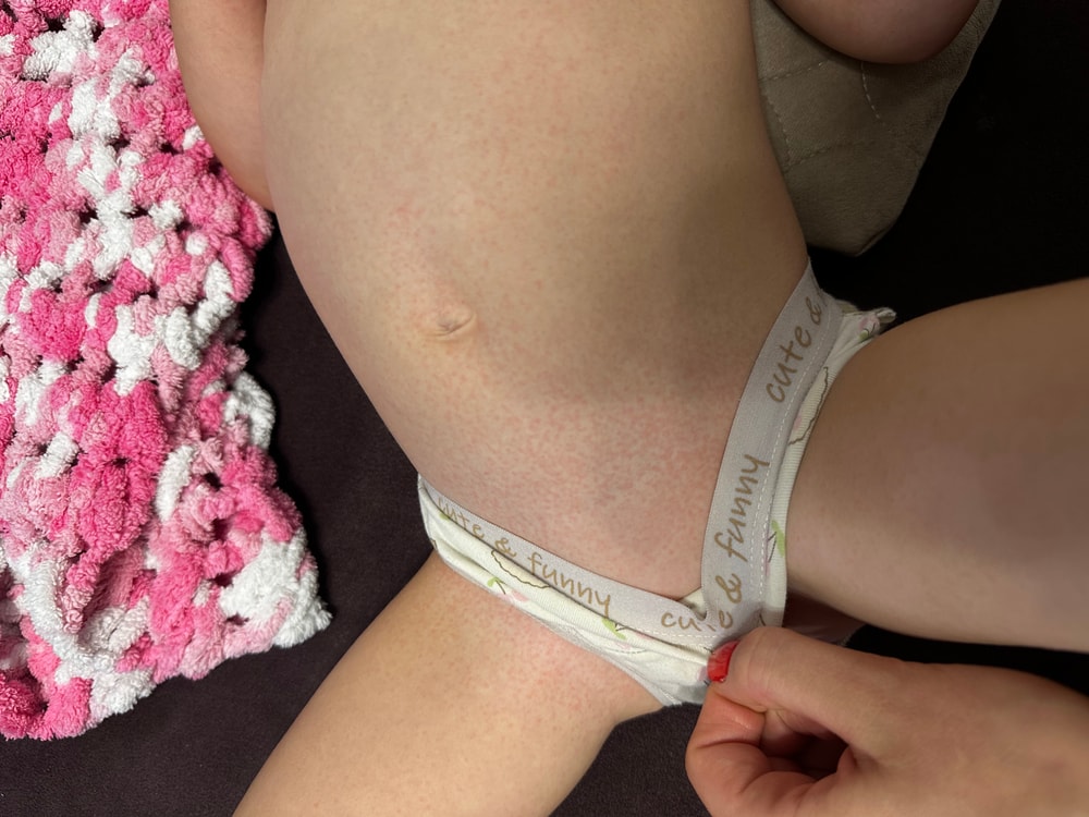 Высыпания на кожеЗдравствуйте ! Подскажите, 2 дня были в саду , в пятницу потекли сопли , в понедельник температура 38+ и вот такая вот картина ( на фото) . Врач приходил , или розеола или краснуха . Но читала , что розеола сначала температура , потом сыпь дня через 3 , у нас же одновременно , сначала ступни и ладони , потом вот живот. От краснухи прививка есть . Что это все таки ? Как лечить ? Врач сказал, сбиваем температуру , промываем нос и ждем , особо лечения нет . Первый раз у нас такая сыпь , переживаю 😬