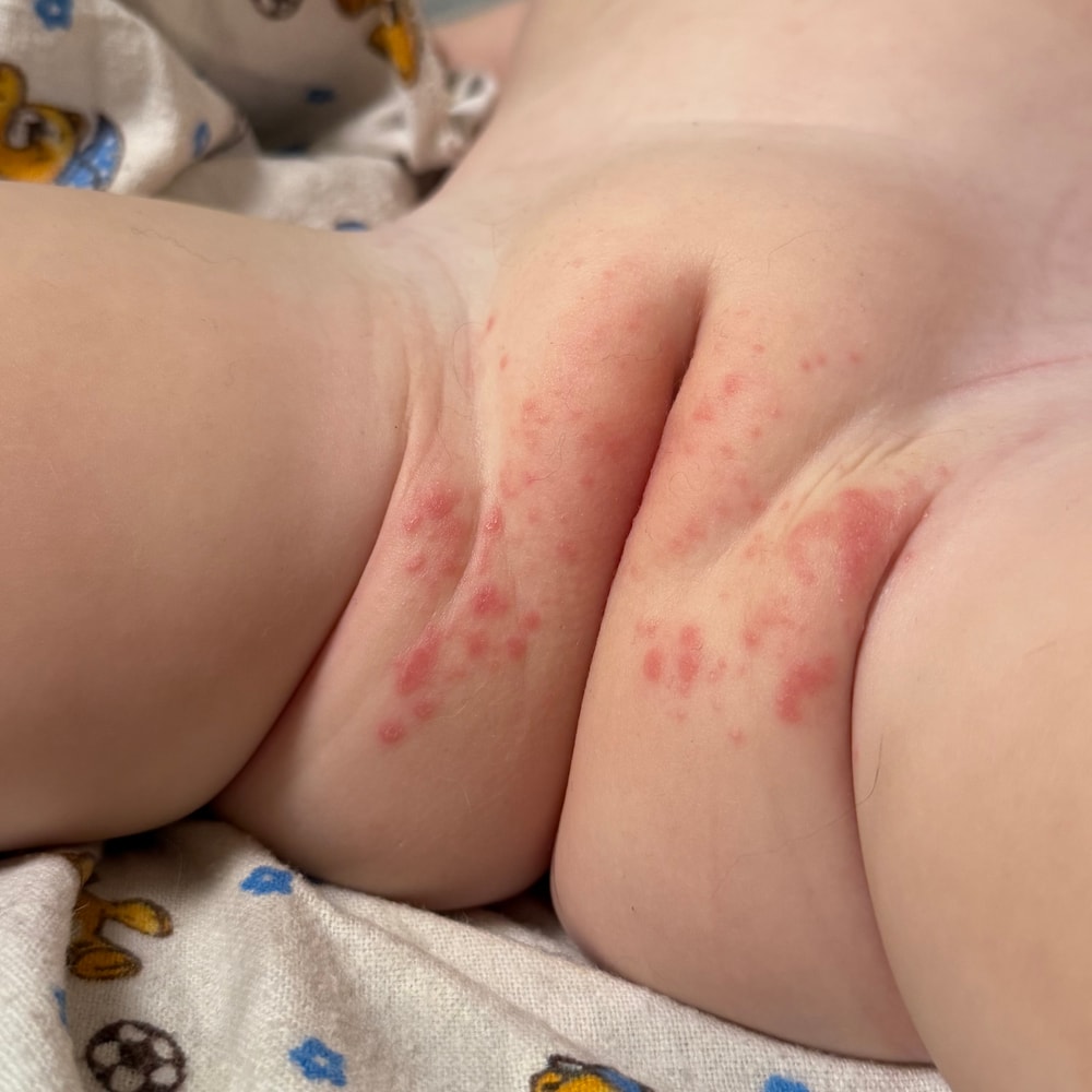 Подгузники поменять надо. У нас было до страшных карост, тонны судокрема, бепантена, комфодерма и прочего измазала.