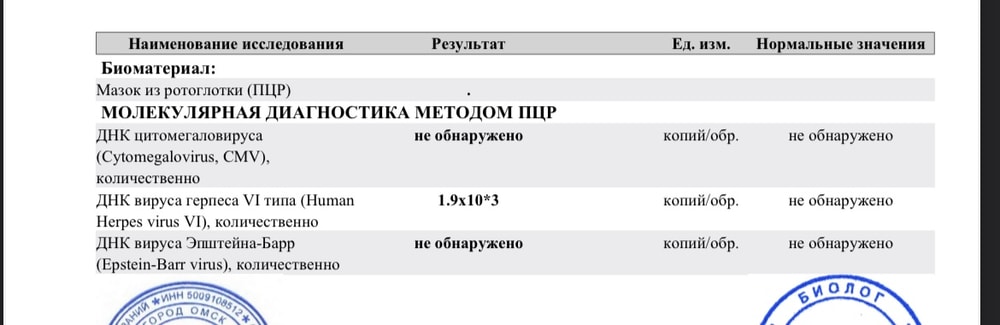 ДНК вируса герпеса VI типа (Human1.9x10*3Herpes virus VI), количественно