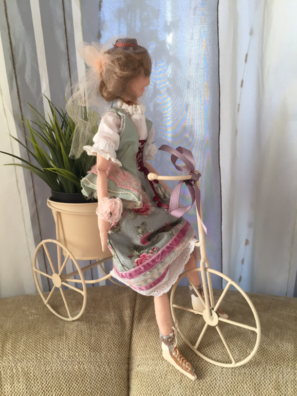 Куколку так назвала, тк шила ее после просмотра фильма про баварского короля Людвига. Была у него подруга, австрийская принцесса ))). А я как раз с подружками собиралась в поездку в Мюнхен. Вот и получилось...Элизабет спешит в Баварию в этой куколке попробовала вышить губки.