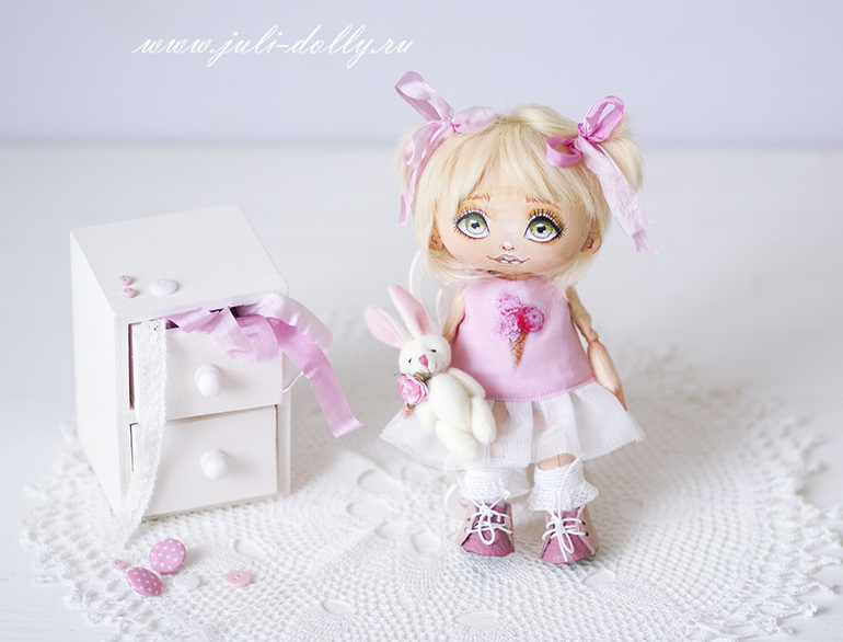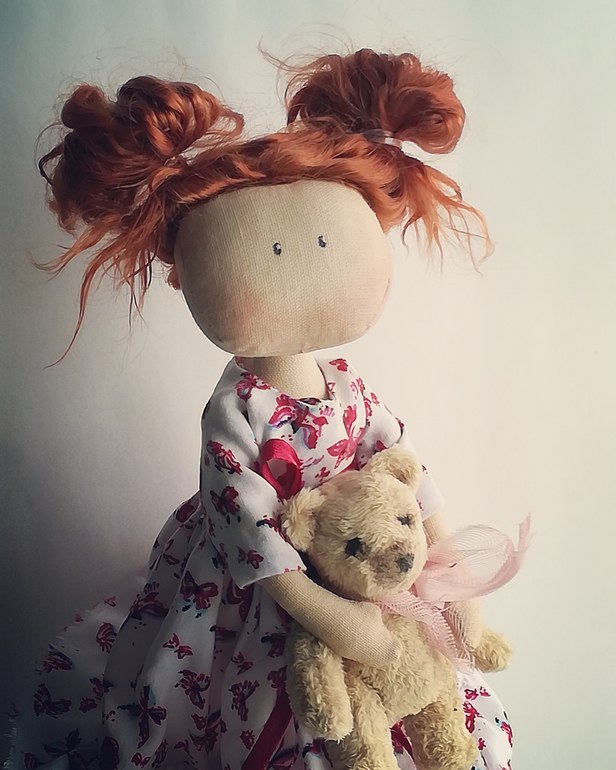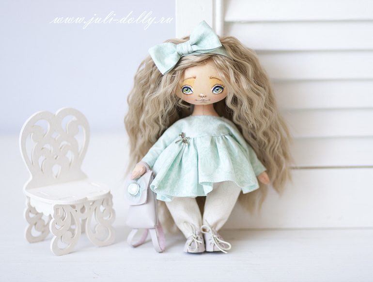Кукла текстильная, ростом 18 см. Кукла-болтушка! Нет, она не очень любит разговаривать, просто ее особенность в том, что ножки у нее болтаются )
