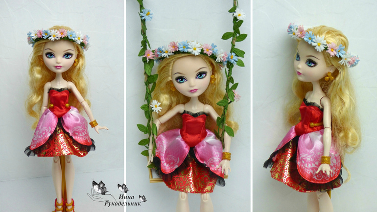 Для куколки сплела веночек из ромашек. Весна пришла и в кукольный мир:)