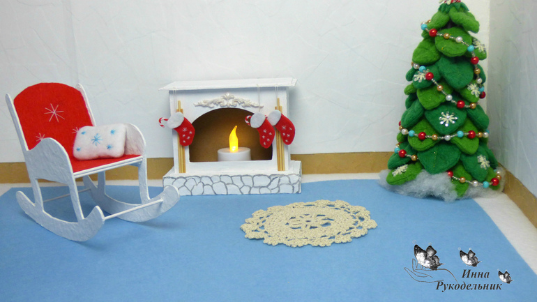 Недавно сделала камин для кукольного домика и мне захотелось сделать ещё кресло-качалку.