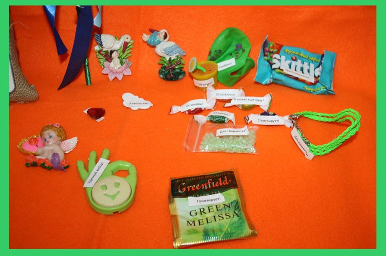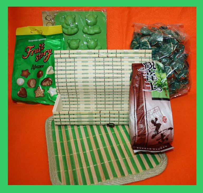 вот такая шкатулочка с зеленым чаечком и к нему разные вкусняшки (до дому не донесла конфетки, все слопала на работе)