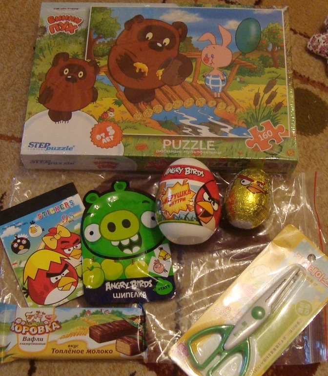 сынулькино богатство. Уже все открыто и съедено :) ножнички общими будут :)