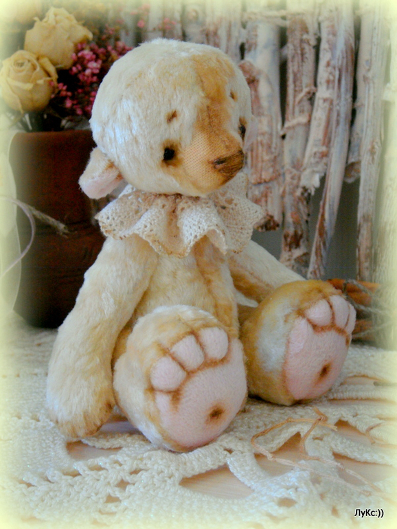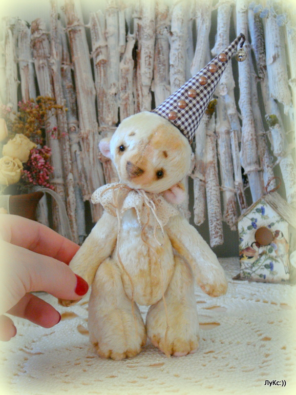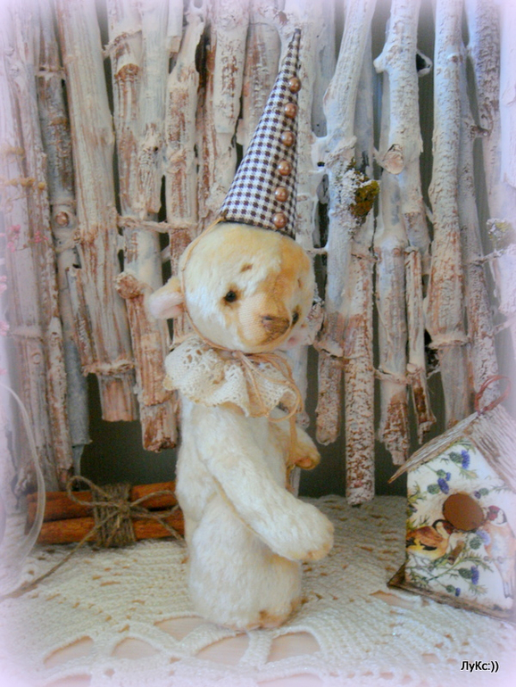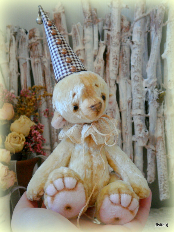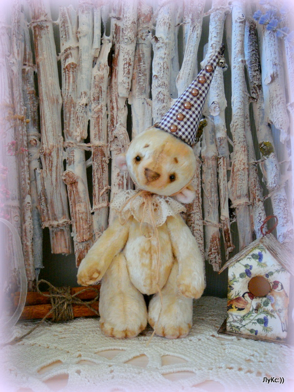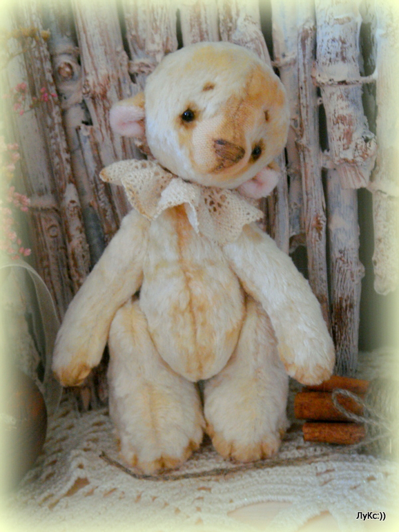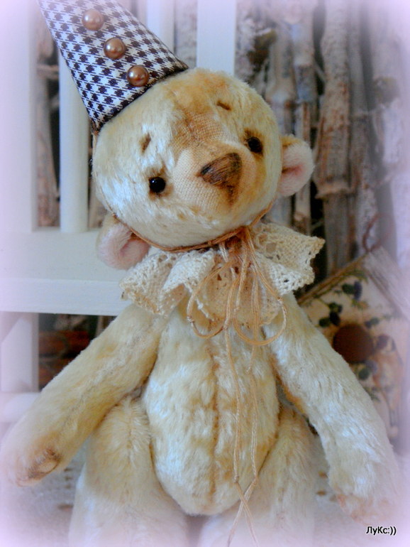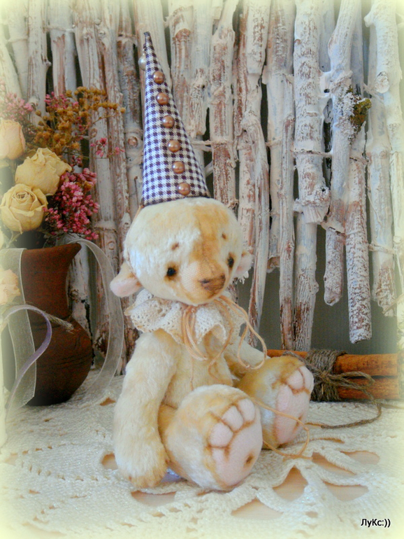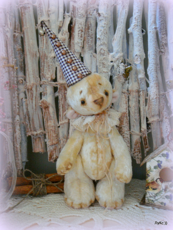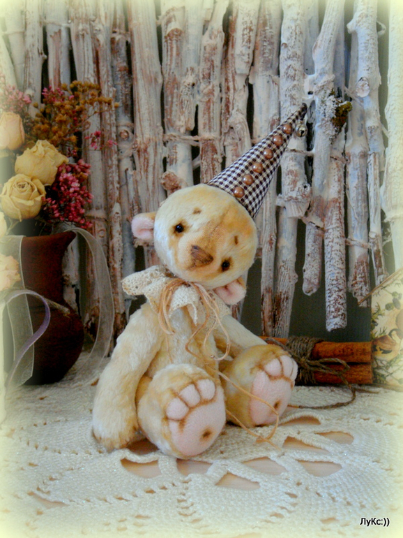 только сейчас его увидела! Очень милый)) налет грусти небольшой, делает его неповторимым и как всегда работа потрясающая) Ксюша а ты его не опилками набивала? а выкройка как в МК?
