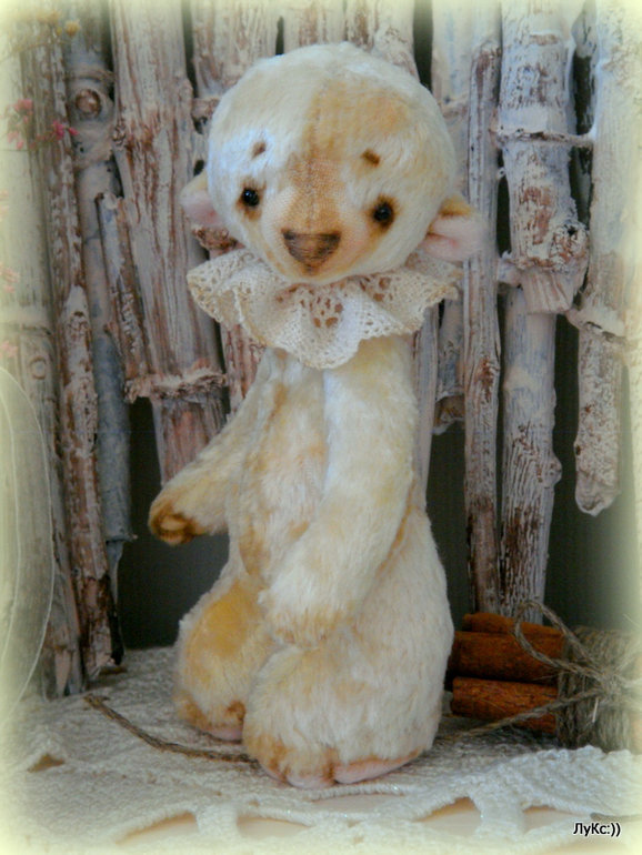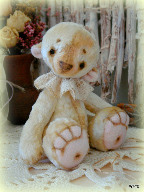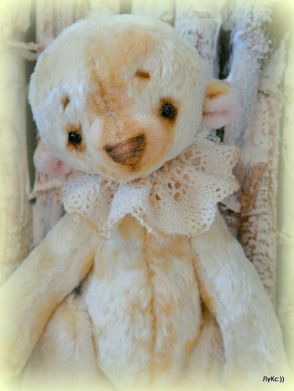 Пробую разные выкройки)) Этот малыш пошился совершенно внезапно и спонтанно)) Очень мне нравится результат! Плюш, микрофибра, шерсть, 6 шплинтов, глазки-стекло, мулине вышивала нос, пальчики и бровки, старила маслом))