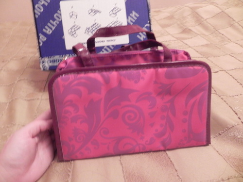 А еще в посылке была замечательная дорожная сумочка-косметичка. Внутри целая куча отделений.