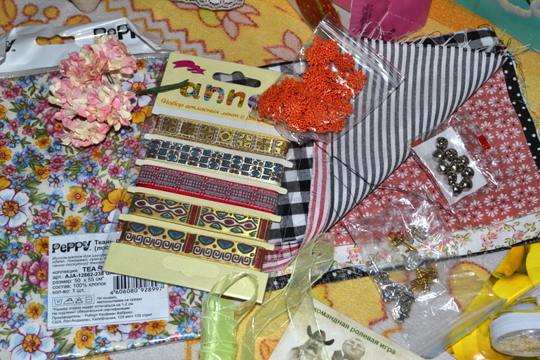Тканьки красивые,ленты, подвесочки и очень нужные для новогодней подготовки бубенчики ))) Феечка постаралась и у нее получилось порадовать всех))) Еще раз огромное спасибо!!!!