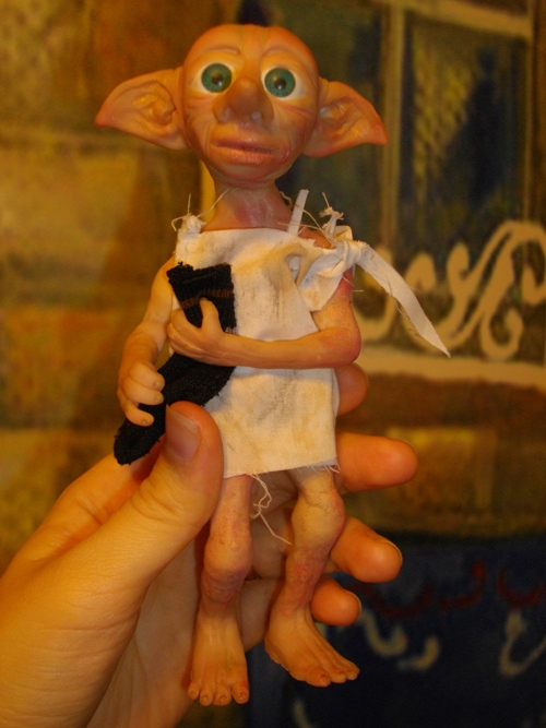 Куклы и игрушки из полимерной глины и других пластиков, а также из соленого тестаРасскажу... Каких только случаев не бывает. Этого Добби, если кто помнит, я в прошлом году очень хотела сшить, но ни фига не получилось, поэтому я его слепила))) Была куча восторженных отзывов о нем на ФБ, в итоге есо усыновила хорошая женщина из США. Она перевела мне денежку на ПайПал и Добби уехал. И вдруг через 2 месяца почти Добби возвращается ко мне, нераспакованный! Я не пойму, в чем дело, пытаюсь связаться с этой женщиной - глухо, как в танке. Не отвечает.