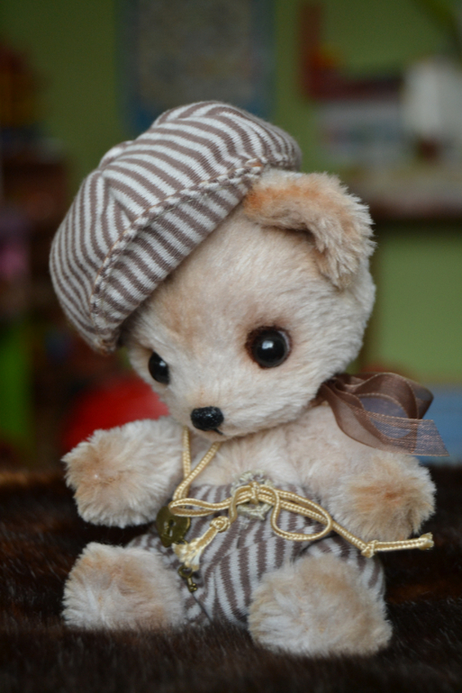 Прошка ищет маму. Рост 16,5 см. Сшит из искусственного меха, утяжелен метал.гранулятом, тонировка маслом. Ручки, ножки подвижны. Голова на двойном шплинте. Одежка снимается.