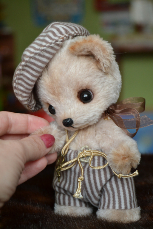 Продажа работ и предложения от рукодельницПрошка ищет маму. Рост 16,5 см. Сшит из искусственного меха, утяжелен метал.гранулятом, тонировка маслом. Ручки, ножки подвижны. Голова на двойном шплинте. Одежка снимается.