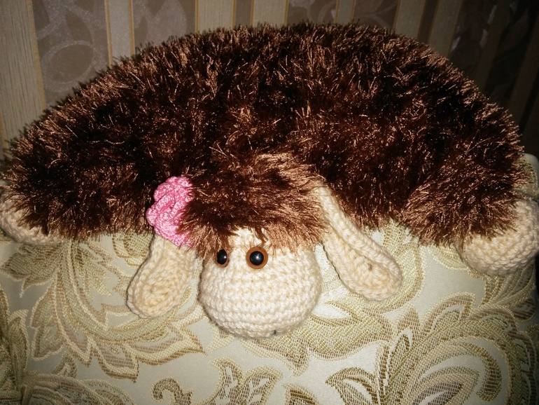 А там обалденная подушечка овечка (я когда галерею смотрела, мне эти подушечки очень понравились и она досталась мне!). Лена как всегда отлично распределила снегурочек