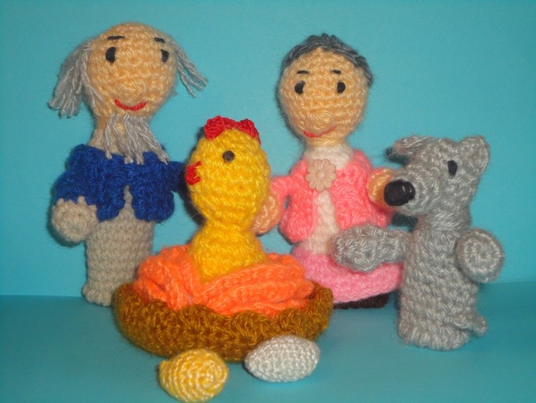 Вязаные куклы и игрушкиСвязался вот такой пальчиковый театр на заказ по сказке Курочка Ряба.