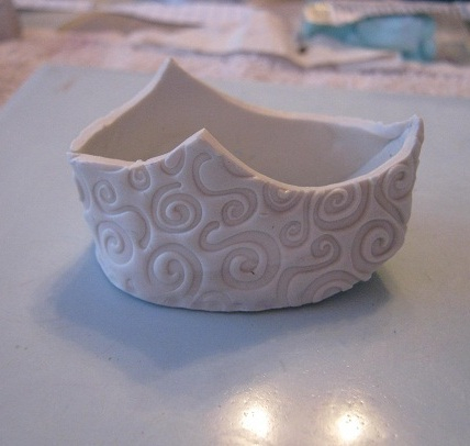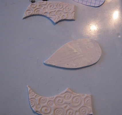 Прикладываем к раскатанному пласту глину и ножом вырезаем заготовки башмачка. Детали вырезаем так: пятка к пятке (зеркально), чтобы не запутаться.