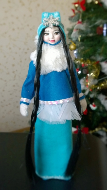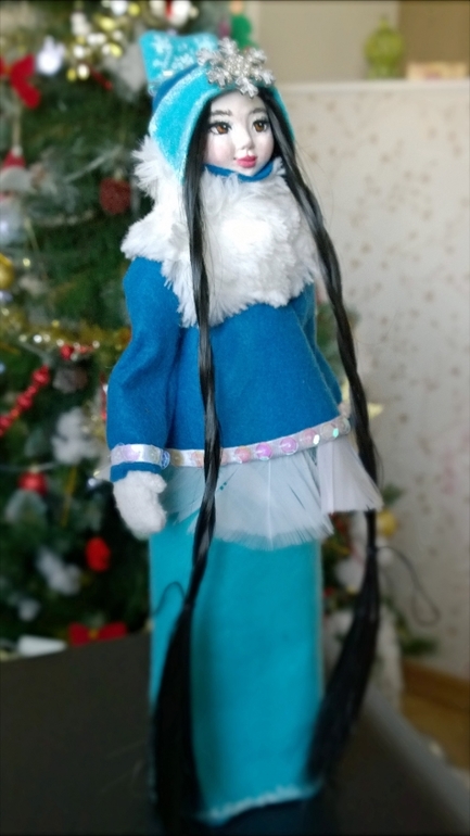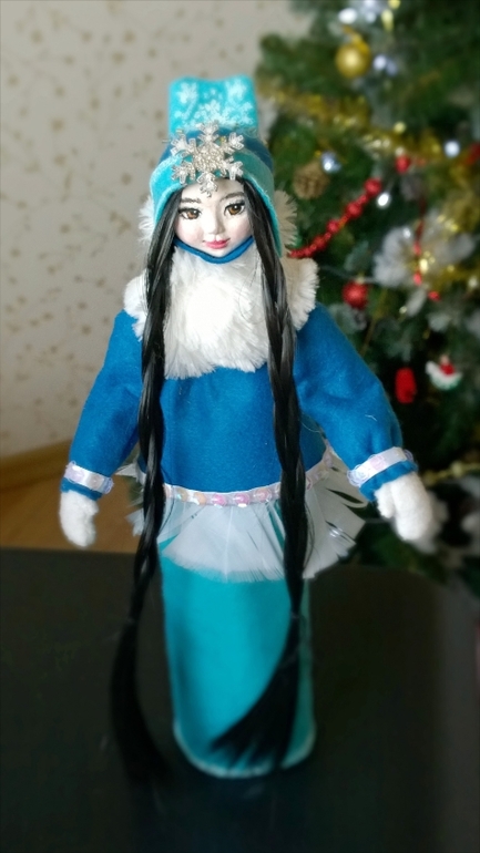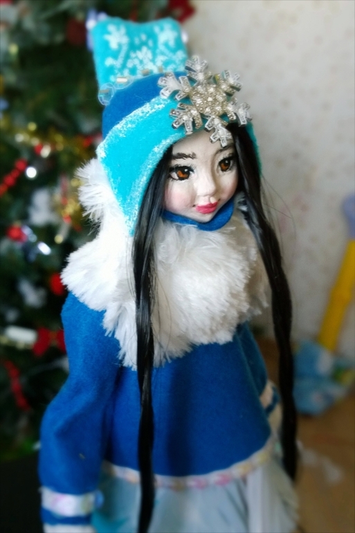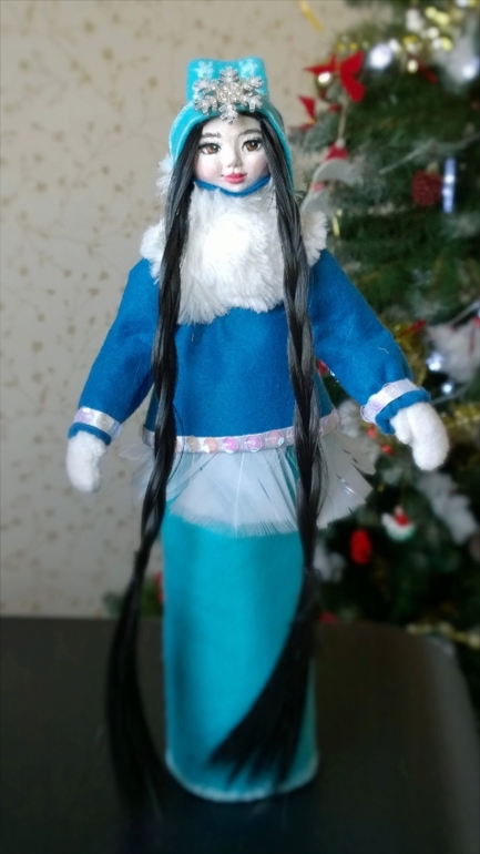 Каркасные куклыВсем приветик! Сделала еще одну зимнюю красавицу (тоже презент). На ее создание ушло всего 6 часов (не считая высыхания глиняной головы), тоже как у куклы № 2 голова из полимерной глины, а тело из проволоки обмотанное синтепоном и ниткой. Процесс работы забыла сфоткать, но успела щелкнуть результат перед тем как подарить