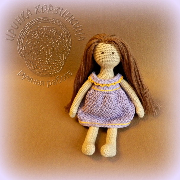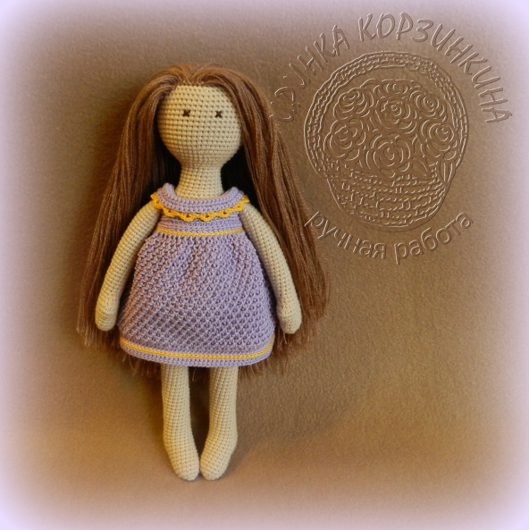 Теперь немного о кукле... Игрушка выполнена крючком из хлопка с акрилом, цельновязаная. Наполнитель синтепух. Кукла сидит и стоит с опорой. Руки-ноги подвижные. Размер игрушки 28 см.