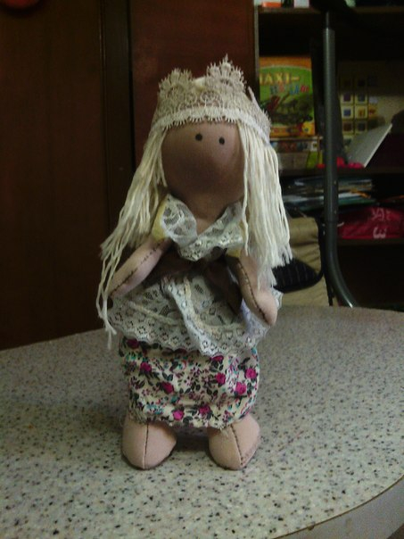 Вот у нас сшилась Марина)) Так сын её назвал, доче вроде понравилась. Шила такую впервые, с волосами напортачила, т.к. делала по наитию, не зная как правильно это делается.