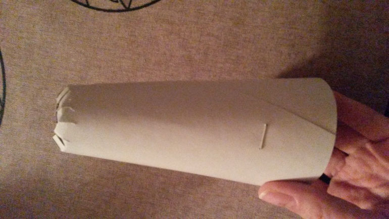 из картона сделали конус, сверху сделали с помощью насечек такую "площадочку", куда будем приклеивать голову куклы