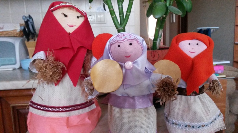 По канонам обязательное условие - это блин, символ Солнца, в руках у Масленицы!