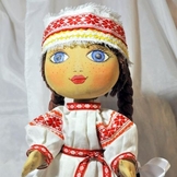 Волосы изготовлены из пряжи(шерсть и хлопок). Их можно расчесывать и менять прически. Куколка сидит и стоит самостоятельно, но стоит не очень устойчиво.