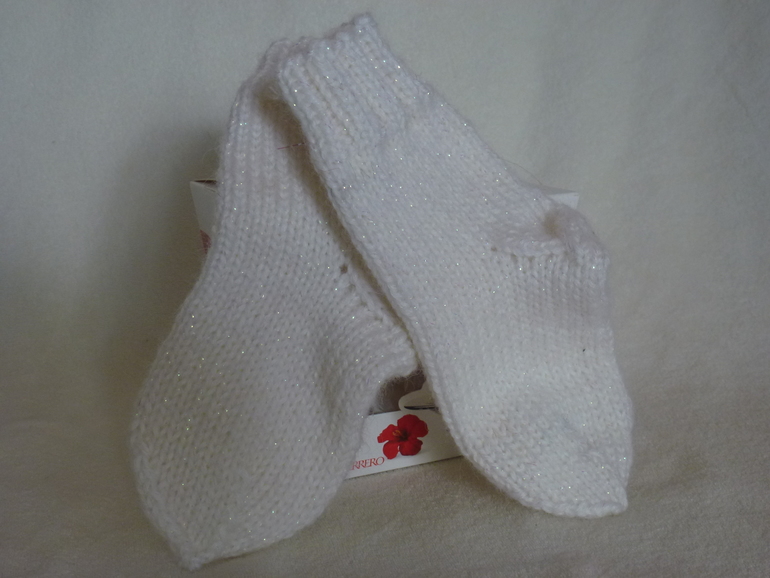 И даже наша маленькая Анютка не осталась без подарка. Очень мягкие, теплые и красивые носочки связала ей Мария