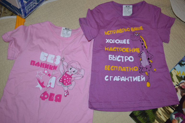 Девочкам еще маечки с позитивными надписями!!!!!!