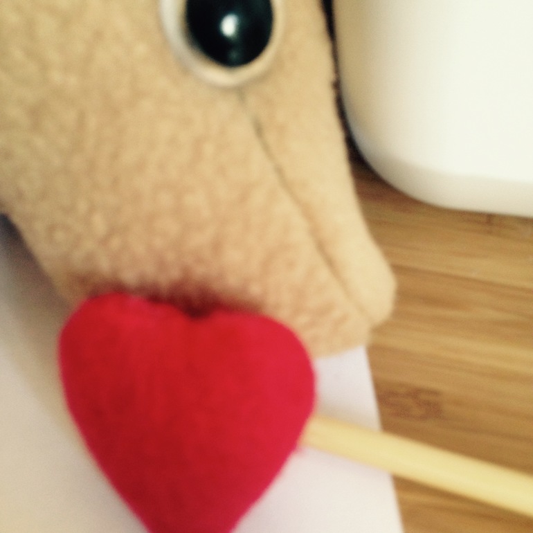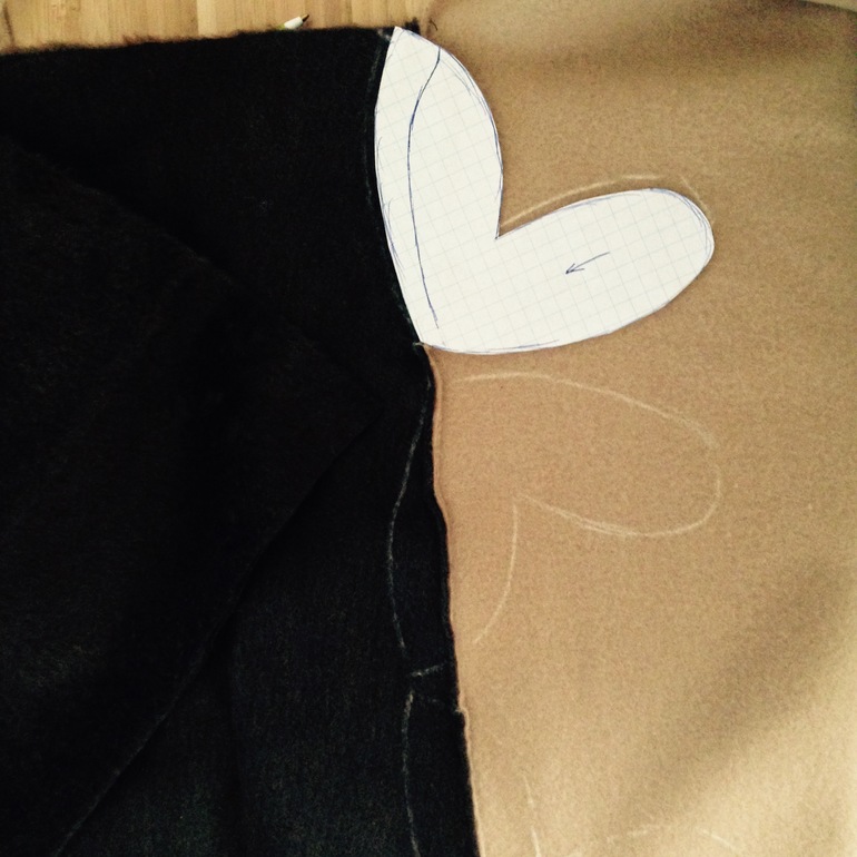 Из красного флиса (остались кусочки от пальто для куклы) сшито сердечко...
