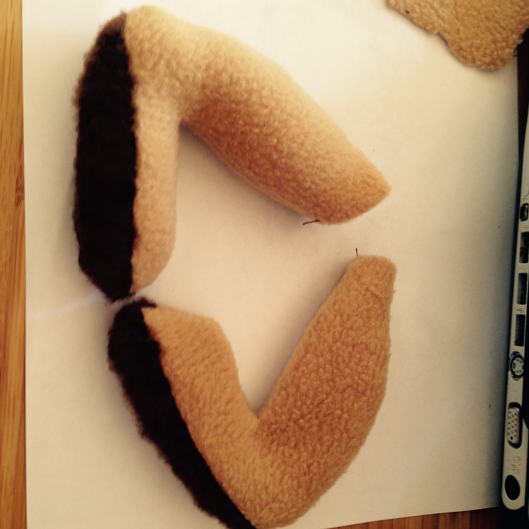 Для раскроя ножек сначала сшила светлую и темную ткани, хатем раскроила.