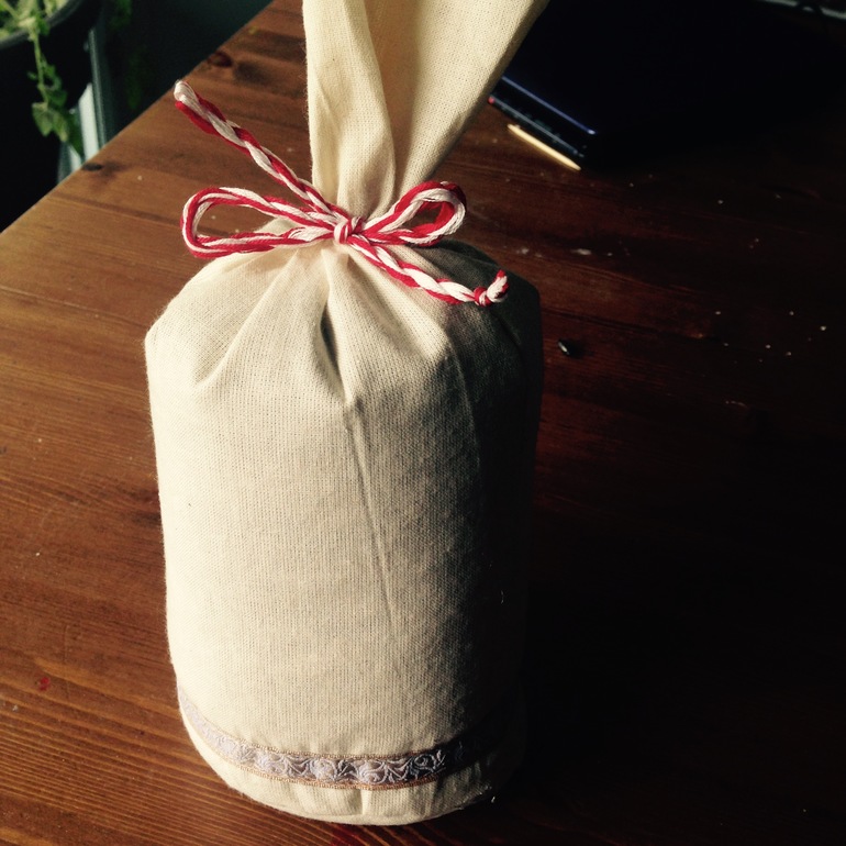 Часть мешочка оставляем не заполненным и завязываем шнуроком.