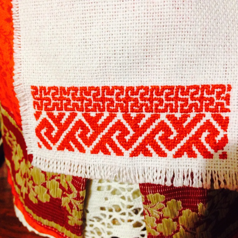 Сверху нижней юбки надеваем юбку-паневу. На голове платок, или головной убор-сорока.