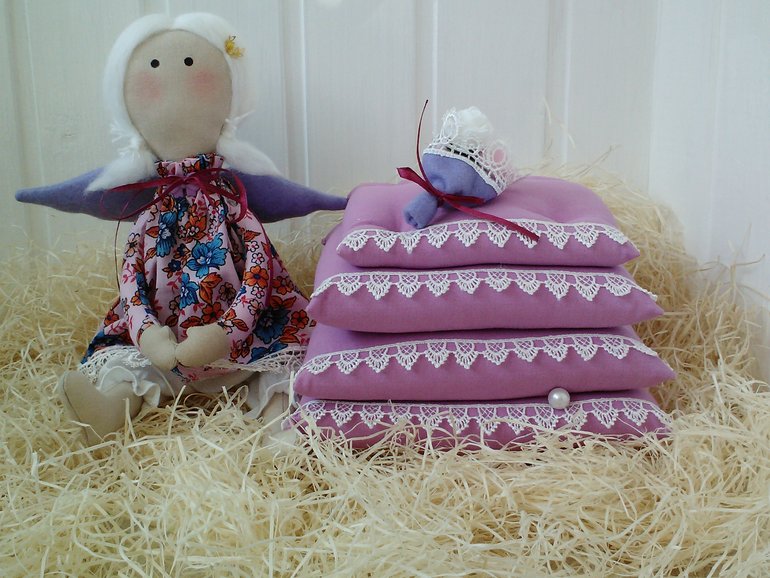 Интерьерная куколка ищет новый дом. Материалы: хлопок,кружево,фетр,фоамиран,бусина,атласная ленточка,шерстяная нить,пуговицы,шерсть для валяния,акриловая краска. Высота подушек 12см, высота куклы 21см. По вопросам приобретения пишите в сообщении. Дополнительные фото.