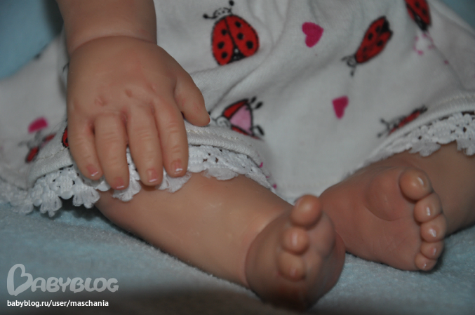 Рост малышки в сидячем положении 23 см, а если положить и вытянуть ножки -30см.