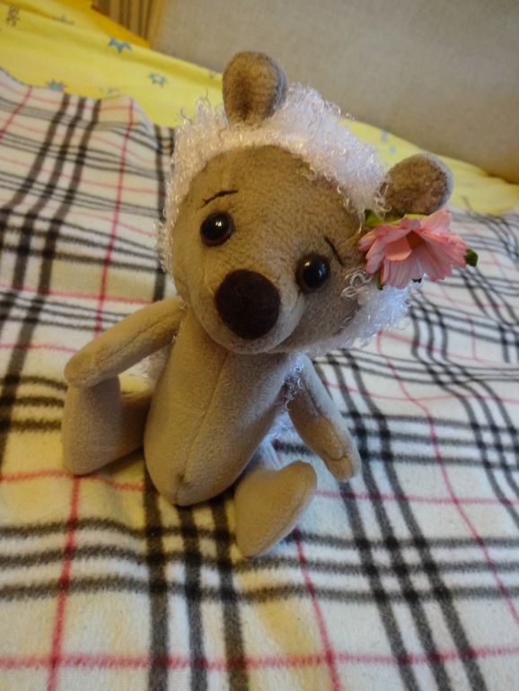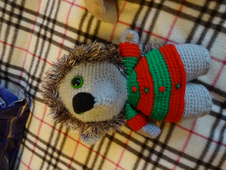 А это её друг и товарищ - ежик в технике амигурами (по-моему :)) Он такой плотненький, тяжеленький, стоит сам, мальчишечка прям, верный друг!