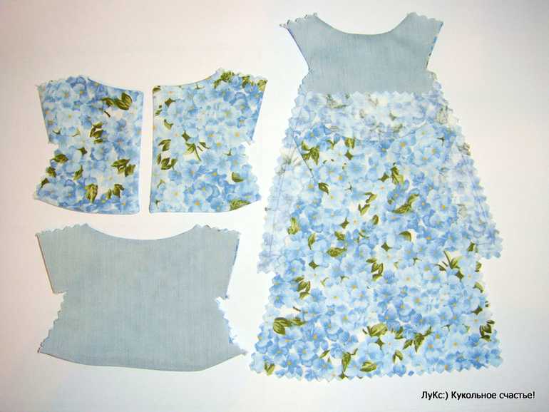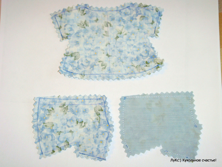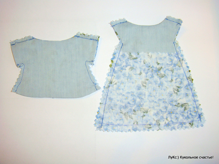 И прошиваем как на фото, незашитые участки нужны для выворачивания и сшивания деталей. Вырезаем. У платья подкладочная ткань до пояса (для экономии))
