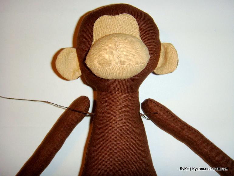 Ручки обезьянкам я пришила, используя нитяное крепление: