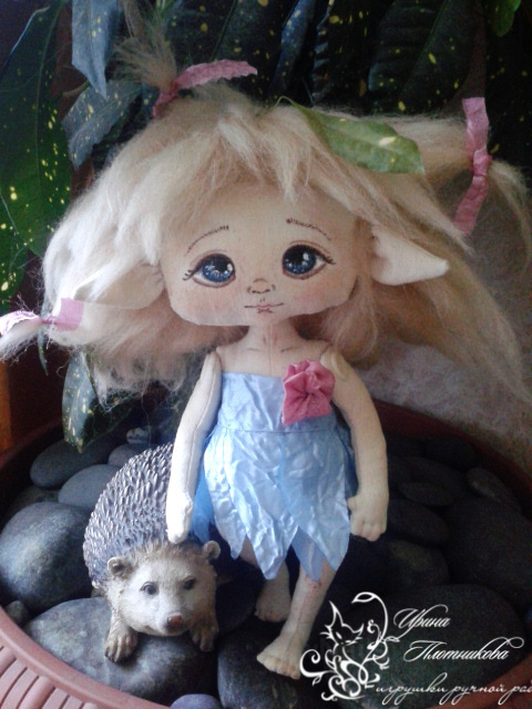 Продажа работ и предложения от рукодельницМаленькая цветочная Эльфочка,настолько маленькая,что сама причесываться пока не умеет. Рост 25 см.Голова,ручки и ножки подвижны.