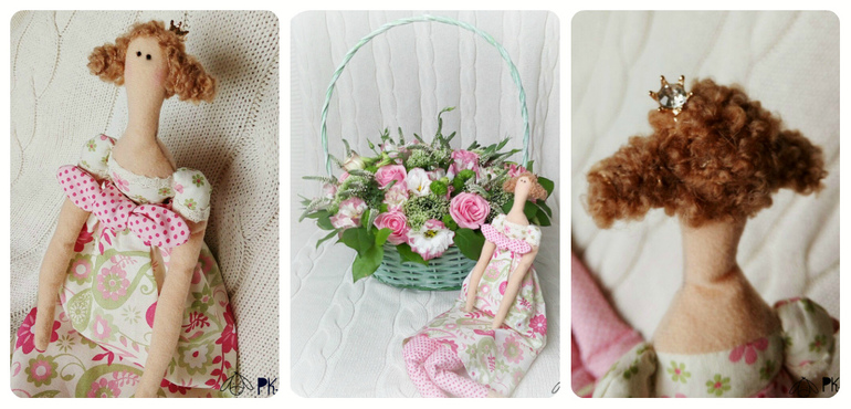 Моя первая Фея - Тильда. Шила ее по мотивам «Цветочной феи». Очень старалась и готовила ее к двухлетию своей крестной доченьки. Корзину с цветами делала тоже я, флористика еще одна моя любовь)