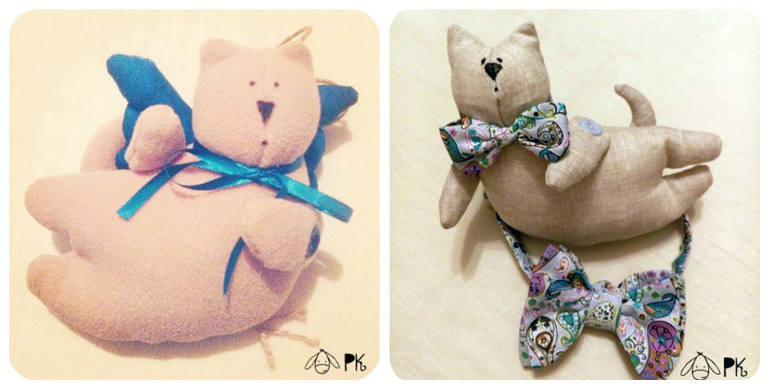 Мой самый первый смешнокот (так назвал его мой муж) был сшит спонтанно и стал подарком для начальницы на ее ДР. Второго я подарила брату и сшила бабочки для двоих)) Очень радуюсь, что брат одевает эту бабочку, а не просто положил ее на полку)