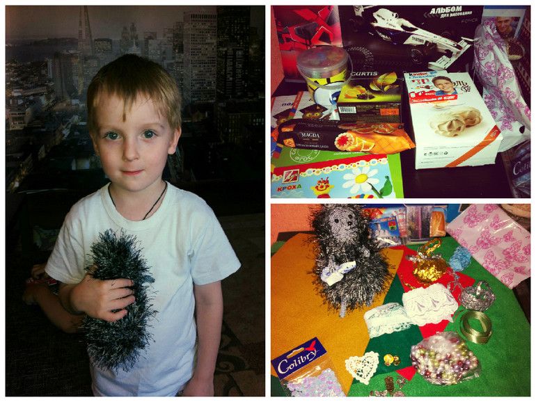 Обмен подаркамиА вот и наш ежик дома, старший сынок его сразу себе забрал. Спасибо большое нашей феечке Татьяне из г.Киржач!))) столько радости у детей от сладостей ,сколько радостей от хомячьих запасиков у меня....мммм. Ежик такой тискательный, мне как неумехе в вязании очень понравился