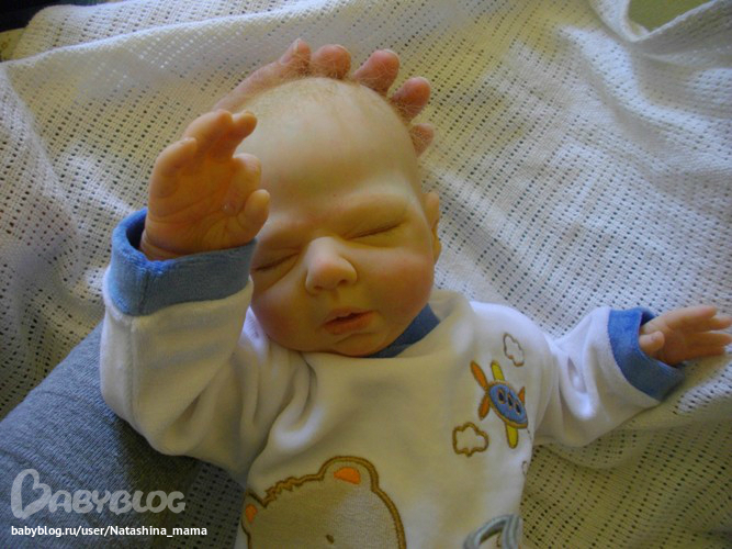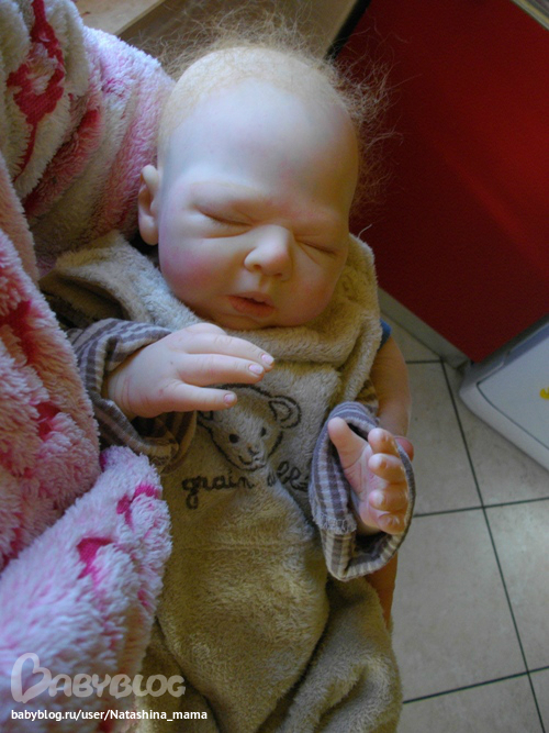 Оля, от души поздравляю тебя с первым реборненком:))) Чудесный малыш! Мне нравится, что кожа у него очень светлая, совсем немножко диатезика на щечках:)) Пушок на головке такой трогательный:))))) Урааа! В нашем сообществе первый реборн:))))