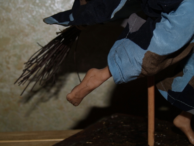 Если честно,то это поставленный мне диагноз:"Синдром перелетной птицы" Звучит красиво, а на самом деле означает лишь то,что зимой начинает бушевать моя старая подруга Астма...И чтобы она успокоилась надо срочно бежать в теплые страны.Но финансовая воронка засосала наглухо.А фантазии финансовые проблемы не страшны-вот и родился такой образ ведьмочки .Которой никакие границы не страшны...Вот так вот -схватила книгу заклинаний,вскочила на метелку и попробуй догони...