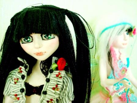 Высота 35 см. Выполнена из керамики, покрыта акриловыми красками, закреплена матовым лаком, руки ноги подвижны, с подставка снимается, волосы сделаны из атласной ленты. Одежда снимается, кукла выполнена в единственном экземпляре. Больше фото сделаю если нужно.
