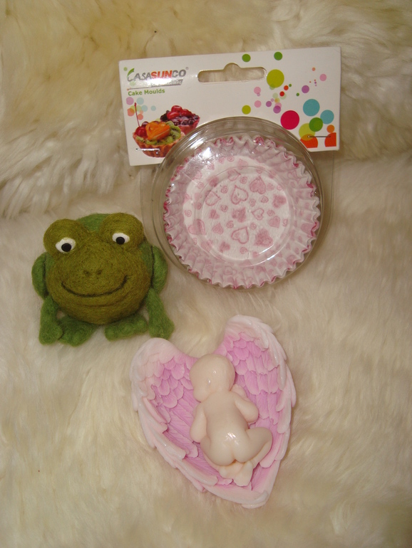 Валяная лягушечка в мою коллекцию, формы для выпечки и мыльце (какое оно красивое и трогательное, спасибо!!!!!)