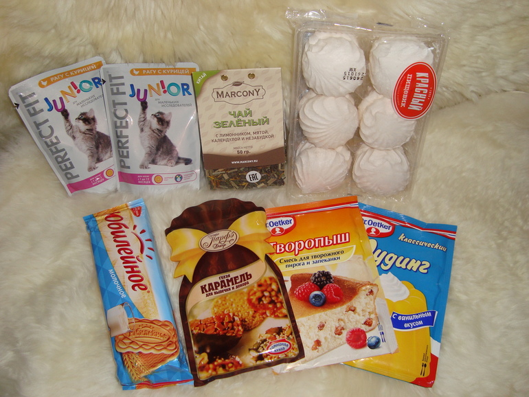 Радость для пуза;))))) Для нашего домашнего любимца вкусняшка (оценил;)) Чай (я очень люблю с такими добавками!), зефир, печенье и вкусняшки для выпечки)) Теперь будем набирать лишние килограммы;))))