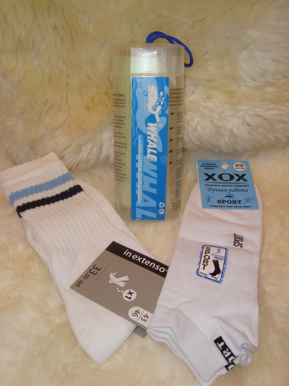 Подарочки сынуле (спортивное полотенце и носки), доволен, как слон, просил передать ОГРОМНОЕ спасибо!!