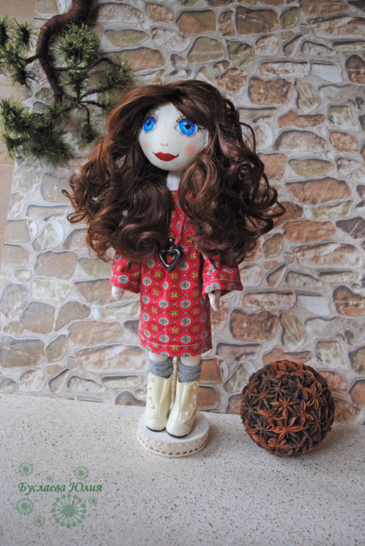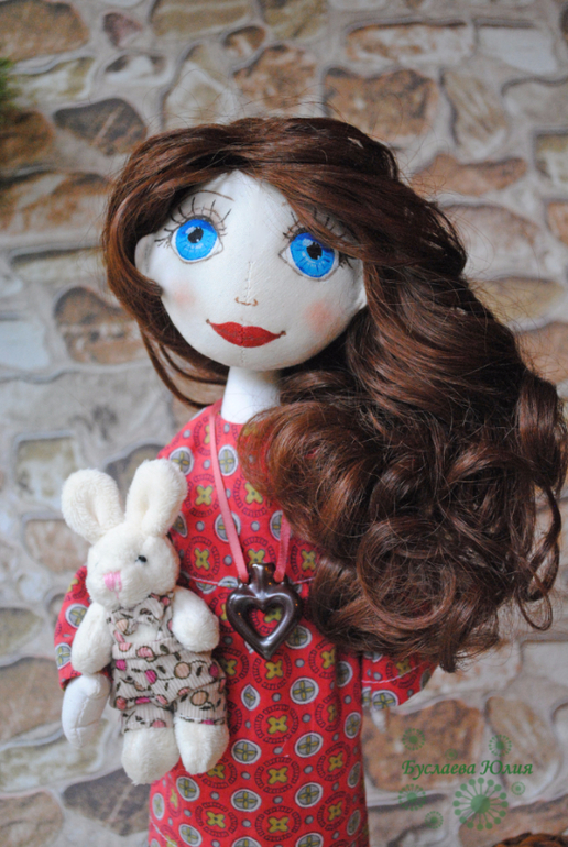 Вот и я снова в строю, долго отдыхала и набиралась сил и вдохновения. Покажу свою новую куколку Софи, одета она по осеннему в вельветовый пиджачок и сапожки. Волосы искусственные, как всегда густющие (люблю густые волосы) и кудрявые. В руках держит любимого зайку.
